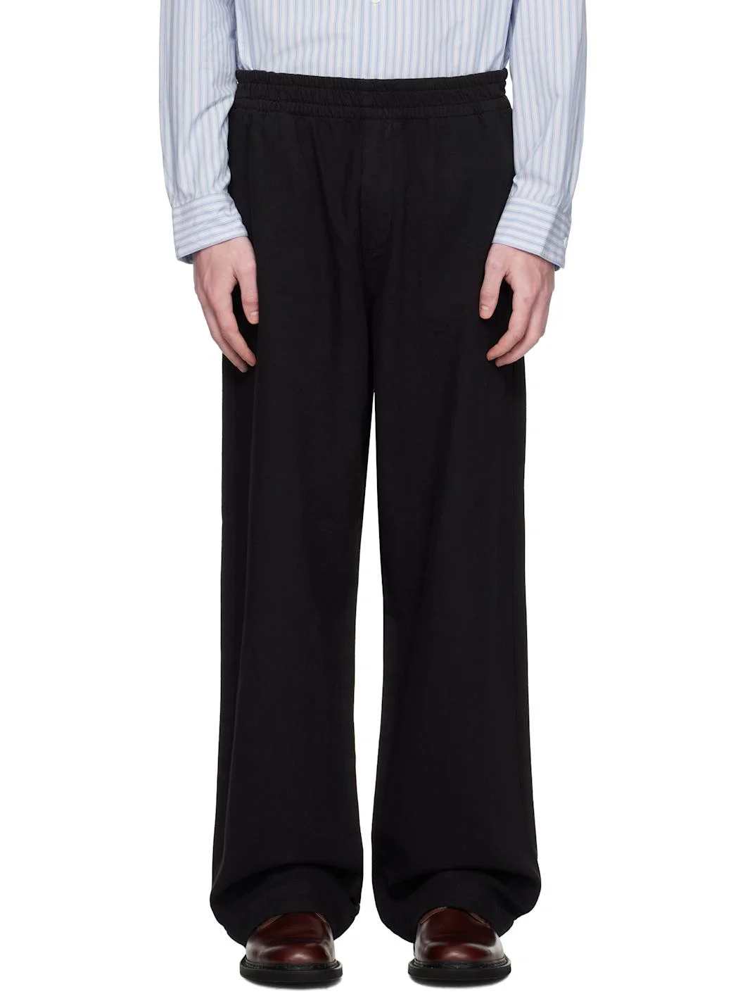 Cotton-blend twill trousers. · Wide-leg · Elasticized waistband · Four-pocket styling · Mock fly Supplier color: Soft black twill 93% cotton, 7% hemp. Made in Turkey 252995M191002
