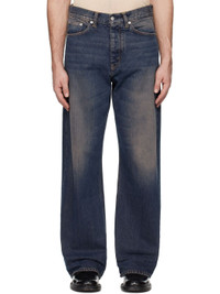 Non-stretch regenerative- and organic cotton-blend denim jeans. Fading and whiskering throughout. · Wide-leg and loose-fit · Belt loops · Five-pocket styling · Button fly · Dropped inseam · Logo patch at back waistband · Logo-engraved silver-tone hardware · Contrast stitching in tan Supplier color: Dark blue pink 50% regenerative cotton, 30% organic cotton, 20% recycled cotton. Made in Portugal 251995M186008