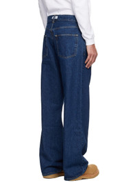 Non-stretch regenerative, organic, and recycled cotton-blend denim jeans. · Fading throughout · Wide-leg · Belt loops · Five-pocket styling · Button fly · Dropped inseam · Logo patch at back waistband · Logo-engraved silver-tone hardware · Contrast stitching in tan Supplier color: Dark Indigo Wash 50% regenerative cotton, 30% organic cotton, 20% recycled cotton. Made in Portugal 252995M186012