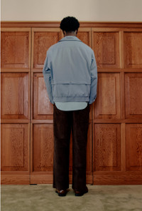 Clavis is 6' and wears a size L Relaxed fit jacket Baby check pattern lining Ribbed cuffs and hem Zip‑up front 100% cotton FABRIC COMP SHELL: 100% COTTON. LINING: 65% COTTON, 35% POLYESTER Hand wash the garment, turning it inside out before washing. Do not tumble dry, and lay flat to dry. Iron on low heat if necessary, and avoid using bleach. For best results, professional cleaning is recommended. COLOUR SKY BLUE