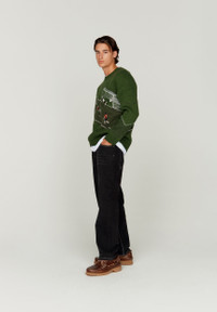 Designed for a standard fit, we recommend selecting your normal size Tayte is 6'0 and wears a Large Best selling picture knit motif Ribbed knit hem Custom HOS colour palette Embroidered top note details Rolled trim All-over football design Vegan knit FABRIC COMP 100% ACRYLIC