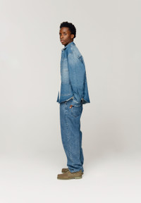 Designed for a standard fit, we recommend selecting your normal size Daniel is 6'0 and wears a size Large Embroidered 'Take a Trip' design Button up denim shirt Front popper fastening Featuring a Yoke HoS logo on the front pocket Contrast stitching Curved hem Classic collar FABRIC COMP 80% COTTON, 11% POLYESTER, 9% RECYCLED POLYESTER COLOUR BLUE WASH