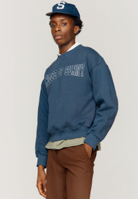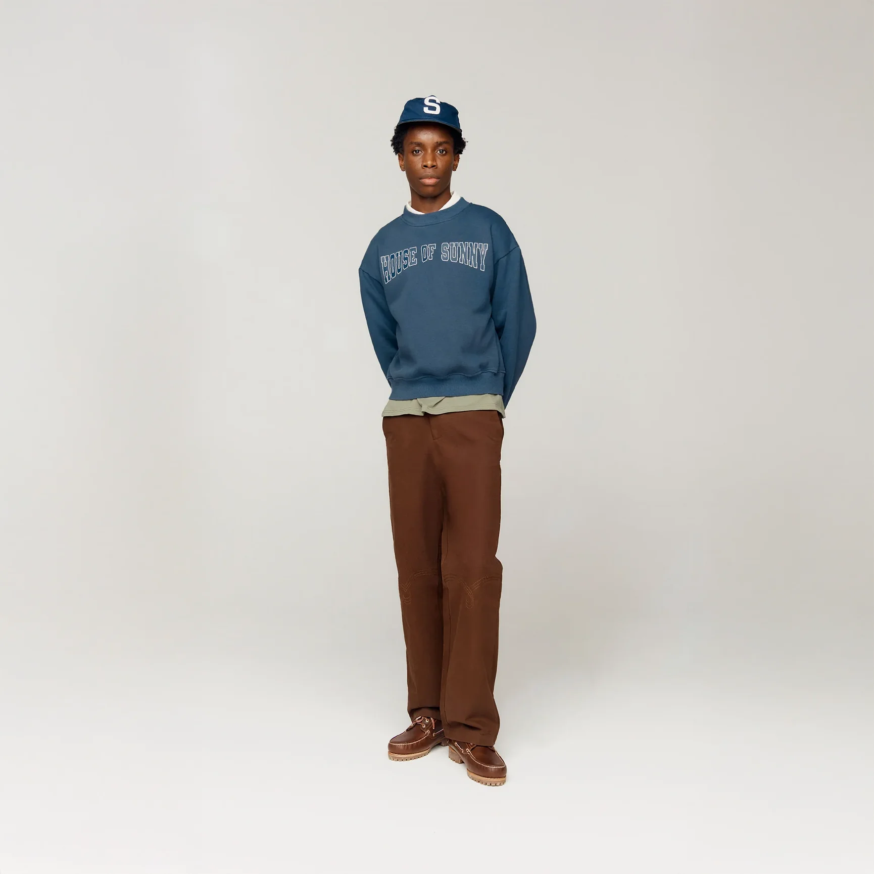 Designed for a standard fit, we recommend selecting your normal size Daniel is 6'0 and wears a size Large Premium House of Sunny varsity style jumper Brushed Organic Cotton material Elbow patch detailing Custom branded artwork Ribbed cuffs and hem Crew neckline FABRIC COMP SHELL: 75% ORGANIC COTTON, 25% POLYESTER RIBBING: 97% ORGANIC COTTON, 3% ELASTANE COLOUR NAVY