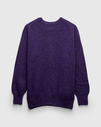 A staple of the whimsical Belgian brand, the "Birth of the Cool" series from Howlin' is made in Scotland from virgin merino wool that has been brushed for a hairier texture and softer feel. This classic crewneck sweater is comfortably tailored and features subtle contrasting color tones underneath its solid color base. Constructed with raglan sleeves and thick ribbed detailing. - Tailored fit - Made from brushed merino wool - Ribbed collar, cuffs, and hem - Raglan sleeve construction - 100% wool - Made in Scotland
