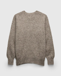 A staple of the whimsical Belgian brand, the "Birth of the Cool" series from Howlin' is made in Scotland from virgin merino wool that has been brushed for a hairier texture and softer feel. This classic crewneck sweater is comfortably tailored and features subtle contrasting color tones underneath its solid color base. Constructed with raglan sleeves and thick ribbed detailing. - Tailored fit - Made from brushed merino wool - Ribbed collar, cuffs, and hem - Raglan sleeve construction - 100% wool - Made in Scotland
