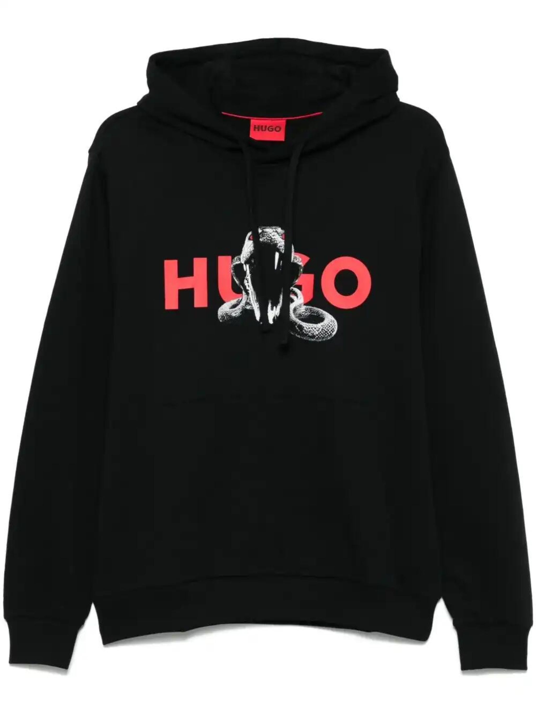 black front pouch pocket ribbed cuffs and hem drawstring hood Size & Fit Model Measurements: Bust: 0cm Height: 0cm Hips: 0cm Waist: 0cm Fabric and Care Designer Style ID: 50530580 Designer Colour: 001 BLACK Composition: Outer: Cotton 100%; Lining: Cotton 100% Washing instructions: Machine Wash