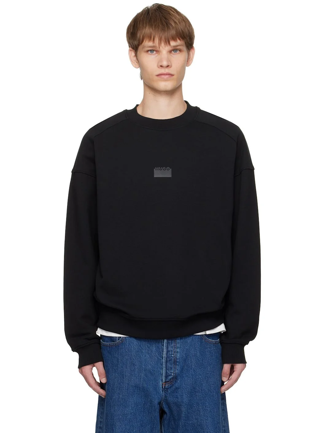 Cotton French terry sweatshirt. · Rib-knit crewneck, hem, and cuffs · Logo bonded at chest and back · Dropped shoulders Supplier color: Black Body: 100% cotton. Trim: 97% cotton, 3% elastane. Made in Bangladesh 252084M204006