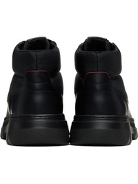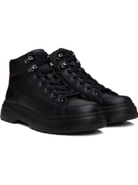 Ankle-high canvas and faux-leather boots. · Lace-up closure · Logo embossed at padded tongue · Padded collar · Text embossed at outer side · Jersey lining · Treaded rubber sole Supplier color: Black Upper: textile, synthetic. Sole: rubber. Made in Lao Peoples Republic 252084M255001