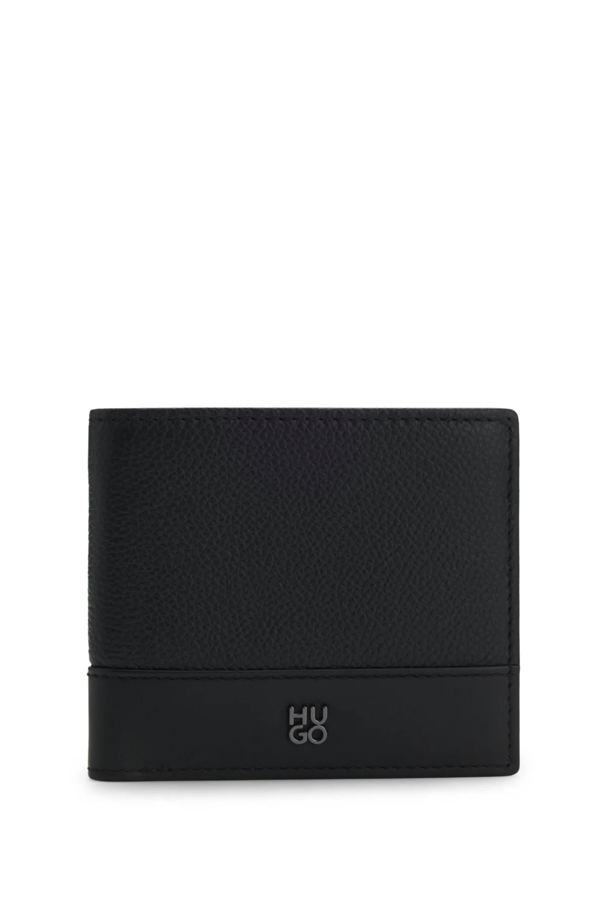 DETAILS Trimmed with a polished gunmetal logo, this HUGO Menswear folding wallet will refresh your everyday effects. Crafted in grained and smooth leather. Measurements: 11 x 9.7 x 2.5cm Length: 11,0 cm (4.3 inches) Width: 2,5 cm (1.0 inches) Height: 9,7 cm (3.8 inches) 2 inside open pockets 2 bill compartments 8 credit card slots Hardware finishing: Polished gunmetal hardware Fully lined Metal letters Packaging: Box Quantic_8cc - 50548314 QUALITY & CARE INSTRUCTIONS Material: 100% Cow leather, Lining: 100% Polyester, Facing: 100% Cow leather