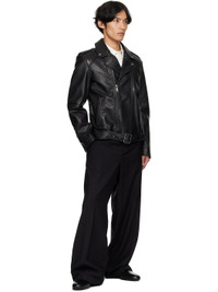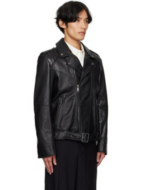 Grained buffalo leather jacket. · Notched lapel with press-stud fastening · Zip closure · Zip pockets at waist · Integrated and adjustable belt at hem · Press-stud epaulets at quilted shoulders · Zip vent at cuffs · Full satin lining · Logo-engraved gunmetal-tone hardware Supplier color: Black Body: 100% buffalo leather. Lining: 100% polyester. Made in India 252084M181000
