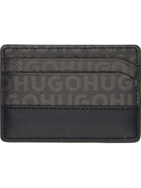 Grained faux-leather card holder. · Logos printed throughout · Logo hardware at face · Buffed faux-leather trim at face and back face · Four card slots · Central note slot · Logo-woven taffeta and moire lining · H3.75" x W4" Supplier color: Black Material: 60% recycled polyester, 20% polyurethane, 20% recycled polyurethane. Lining: 100% polyester. Made in India 261084M163003