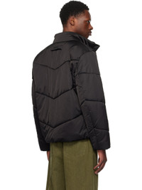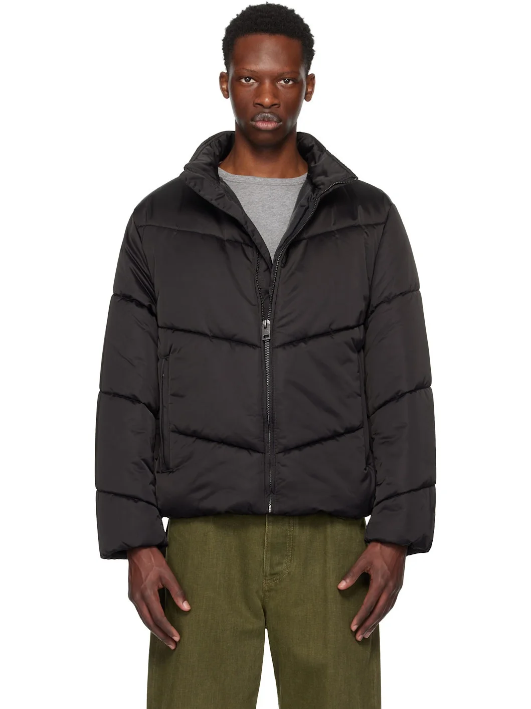 Insulated and quilted polyester satin jacket. Water-repellent. · Stand collar · Zip closure · Zip pockets · Concealed bungee-style drawstring at hem · Inset elasticized cuffs · Logo-bonded locker loop at back collar · Welt pocket at interior · Full satin lining · Logo-engraved gunmetal-tone hardware Supplier color: Black Body: 100% polyester. Fill: 100% polyester. Lining: 100% polyester. Made in Bangladesh 252084M178004