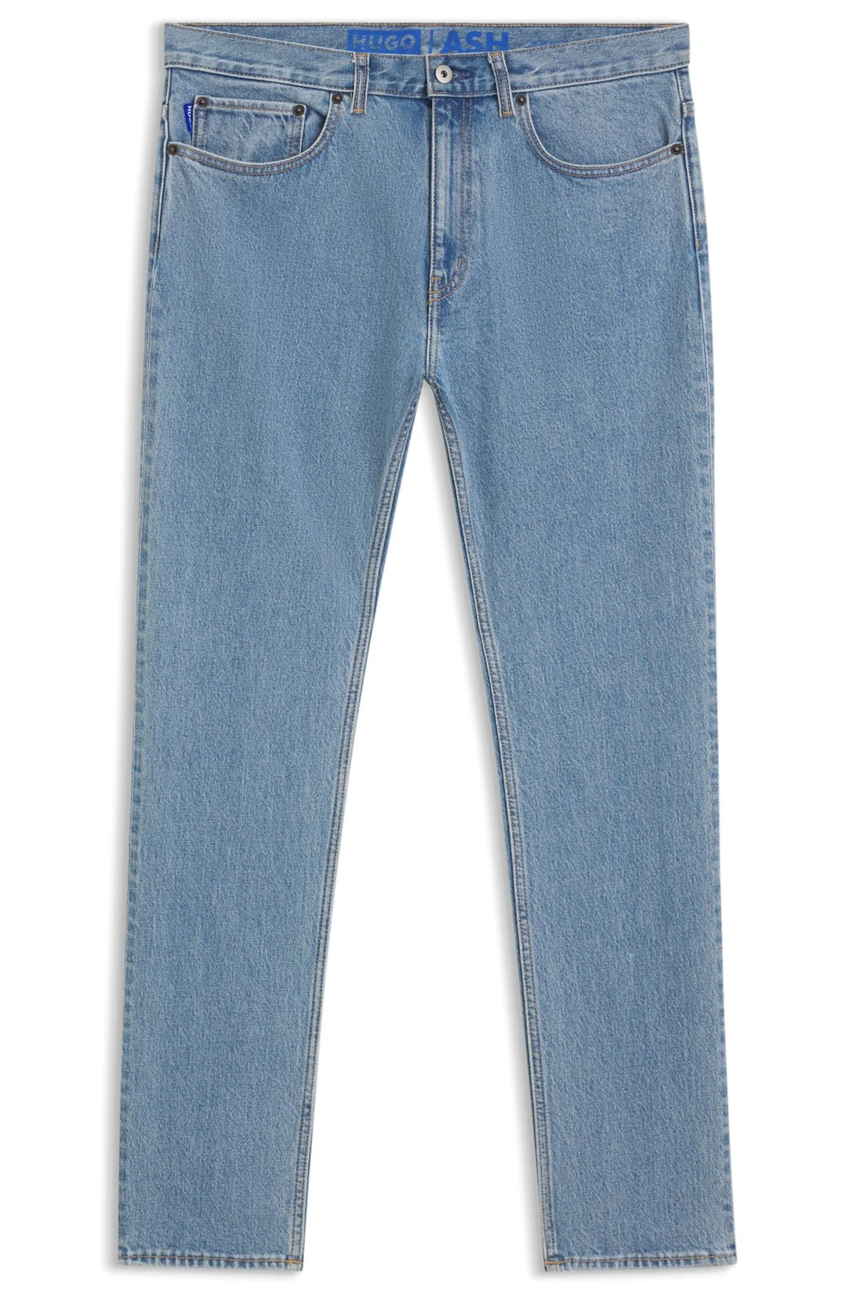 DETAILS With a slim, straight fit and vintage-effect blue wash, these HUGO Menswear jeans are easy to style. Designed in comfy stretch denim. Whiskering details. Slim fit Regular rise Button and zip closure Pockets bottom front: Side pockets Straight leg Pockets bottom back: Patch pocket Standard length Fit foot width: 36,0 cm (14.2 inches) Ash - 50551895 QUALITY & CARE INSTRUCTIONS Do Not Bleach Machine Wash Cold Gentle Do Not Tumble Dry Do Not Dry Clean Material: 99% Cotton, 1% Elastane, pocketing: 100% Cotton Iron Medium Heat