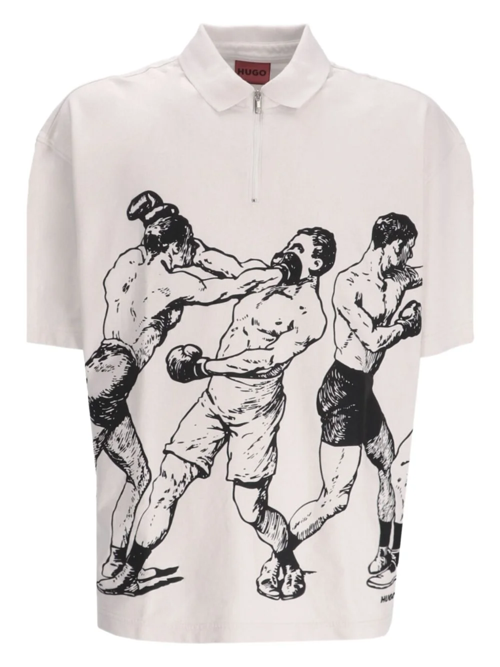 boxing-print polo shirt Highlights - White - Short sleeves - Half-zip fastening - Boxing print - Cotton Imported Composition Cotton 100% Washing instructions Read Manufacturer Guidelines