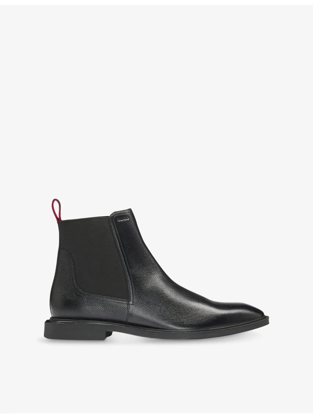 PRODUCT DETAILS - HUGO faux-leather Chelsea boots - 100% thermoplastic polyurethane - Pulls on - Closed almond toe, ankle length, elasticated side gussets, brand embossed sides, pull-loop at back - Wipe with a clean, dry cloth - Upper: 100% thermoplastic polyurethane - Lining: 100% polyurethane - Sole: 100% leather Ref: R04333186