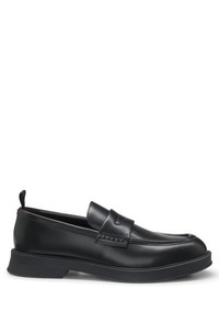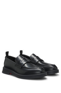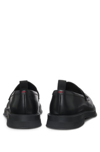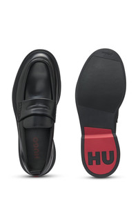 DETAILS Lenner_Loaf_bo - 50541823 With subtle branding and a modern padded strap, these HUGO Menswear loafers are easy to style. Brush-off finishing gives the leather a sleek effect. Fastening top: Slip-on Fully lined Sole: Other material Packaging: Box QUALITY & CARE INSTRUCTIONS Upper material: 100% Cow leather, Lining: 100% Polyester, 60% Polyester, 40% Polyurethane, Sole: 100% Rubber, Innersole: 60% Polyester, 40% Polyurethane