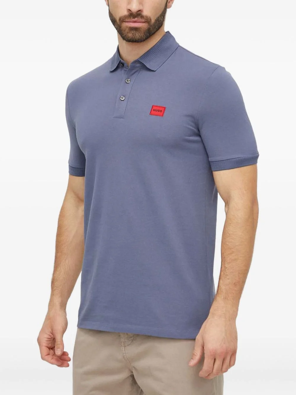 button logo polo shirt Highlights - Grey blue - Button closure - Logo patch - Ribbed collar - Short sleeves - Side slits Imported Composition Cotton 100% SIZE & FIT FittingInformation Designed for a slim fit, this polo shirt offers a comfortable fit that sits just away from the body Made from a midweight non-stretch fabric, this piece offers minimal elasticity when worn Washing instructions Read Manufacturer Guidelines