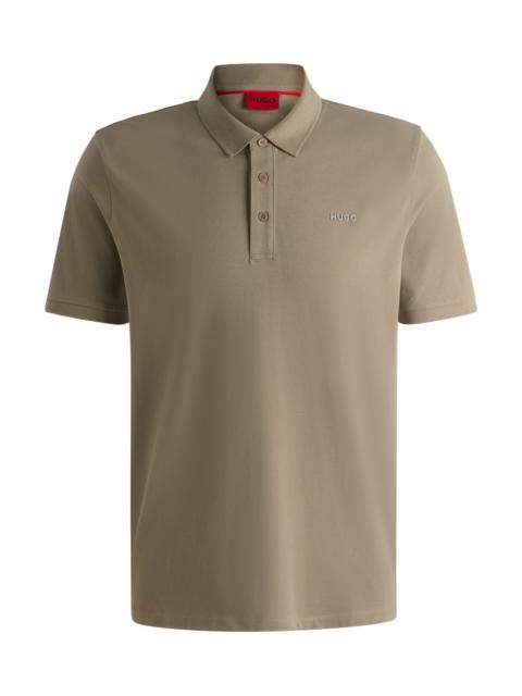 SIZE AND FIT The model wears a size M and is 6'0" tall with a, 33" chest, 27" waist and 35" hips. DETAILS Donos222 - 50466182 An essential polo shirt by HUGO Menswear, cut to a regular fit in soft cotton pique. High-density logo print at the left chest. Regular fit Neckline: Polo collar Short sleeves QUALITY & CARE INSTRUCTIONS Quality: 100% Cotton Do Not Tumble Dry Do Not Bleach Machine Wash Cold Gentle Iron Low Heat Do Not Dry Clean