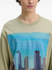 cityscape-print long-sleeve T-shirt Highlights - Light green - Long sleeves - Crew neck - Cityscape print - Paint effect Imported Composition Cotton 100% Washing instructions Read Manufacturer Guidelines