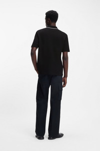 DETAILS Extra soft and easy to style, this regular HUGO Menswear polo shirt has modern contrast piping at the collar and placket. Luxury cotton. Centered logo. Regular fit Neckline: Polo collar Number of buttons: 2 Short sleeves Dalumo - 50553045 QUALITY & CARE INSTRUCTIONS Iron Low Heat Do Not Bleach Machine Wash Cold Gentle Do Not Tumble Dry Material: 100% Cotton Do Not Dry Clean
