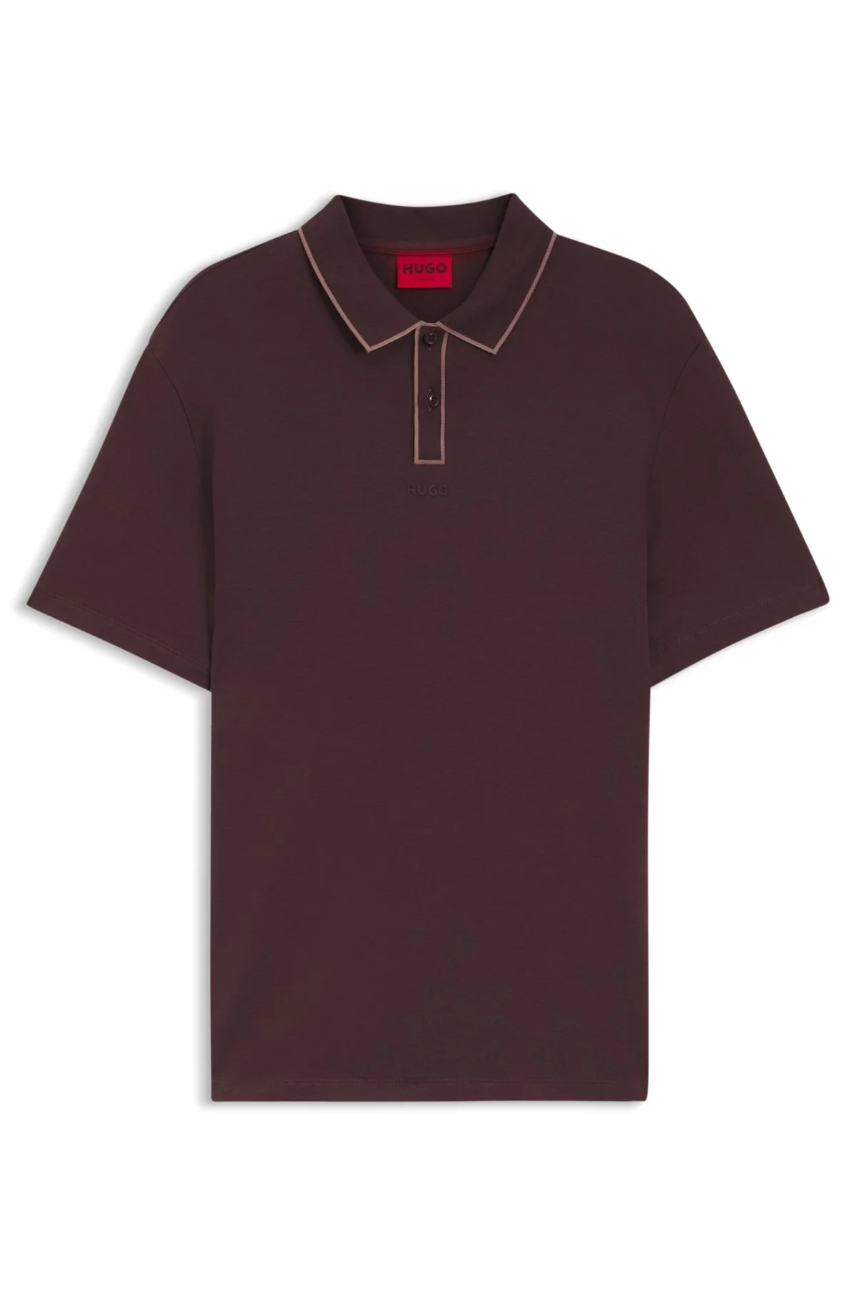 SIZE AND FIT The model wears a size M and is 6'1" tall with a, 33" chest, 28" waist and 34" hips. DETAILS With sporty contrast edges and coordinating branding, this HUGO Menswear polo shirt is crafted in extra-soft cotton jersey. Cut to a straight fit. Regular fit Neckline: Polo collar Number of buttons: 2 Short sleeves Dalumo - 50553045 QUALITY & CARE INSTRUCTIONS Material: 100% Cotton Do Not Dry Clean Machine Wash Cold Gentle Do Not Bleach Do Not Tumble Dry Iron Low Heat