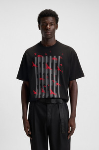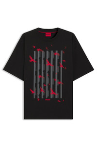 DETAILS Digraph - 50542581 Cut to a roomy fit, this HUGO Menswear T-shirt carries creative bird artwork to refresh casual looks. Crafted in soft cotton jersey. Oversized fit Neckline: Crew neck Short sleeves QUALITY & CARE INSTRUCTIONS Do Not Tumble Dry Machine Wash Cold Gentle Quality: 100% Cotton Iron Low Heat Do Not Bleach Do Not Dry Clean