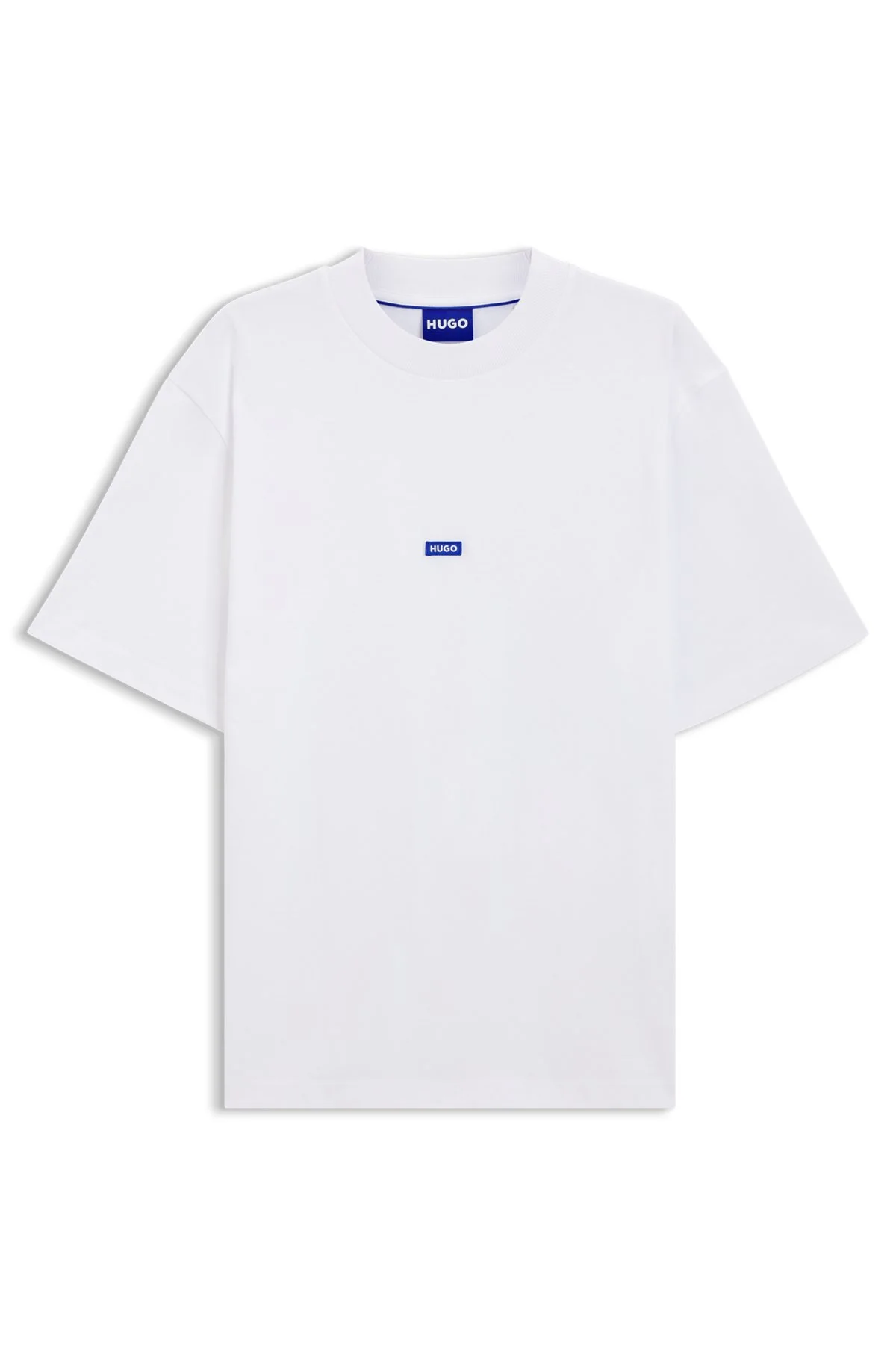 SIZE AND FIT The model wears a size M and is 6'0" tall with a, 33" chest, 27" waist and 35" hips. DETAILS Nieros - 50509991 A casual T-shirt by HUGO Menswear, cut to a straight fit in single jersey with a logo patch in blue at the center chest. Regular fit Neckline: Crew neck Short sleeves Standard length QUALITY & CARE INSTRUCTIONS Iron Low Heat Machine Wash Cold Gentle Quality: 100% Cotton Reduced Dry Clean Do Not Bleach Do Not Tumble Dry