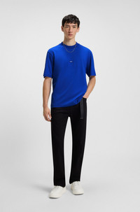 SIZE AND FIT The model wears a size M and is 6'1" tall with a, 33" chest, 25" waist and 35" hips. DETAILS Nieros - 50509991 A casual T-shirt by HUGO Menswear, cut to a straight fit in single jersey with a logo patch in blue at the center chest. Regular fit Neckline: Crew neck Short sleeves Standard length QUALITY & CARE INSTRUCTIONS Reduced Dry Clean Do Not Bleach Do Not Tumble Dry Quality: 100% Cotton Iron Low Heat Machine Wash Cold Gentle
