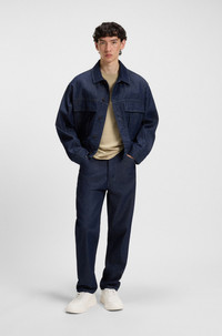SIZE AND FIT The model wears a size M and is 6'0" tall with a, 33" chest, 27" waist and 35" hips. DETAILS Dapusi - 50544458 In a casual straight fit, this HUGO Menswear T-shirt is ideal for everyday wear. Crafted in lightweight cotton jersey. Modern split-logo print. Regular fit Neckline: Crew neck Short sleeves QUALITY & CARE INSTRUCTIONS Quality: 100% Cotton Do Not Tumble Dry Do Not Bleach Machine Wash Cold Gentle Iron Low Heat Do Not Dry Clean