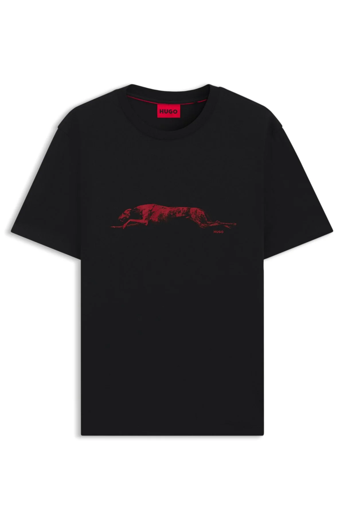 DETAILS This HUGO Menswear T-shirt is printed with dog artwork across the chest for modern impact. Made in breathable cotton jersey. Regular fit Regular fit Neckline: Crew neck Short sleeves Standard length Didug - 50548557 QUALITY & CARE INSTRUCTIONS Do Not Tumble Dry Iron Low Heat Do Not Dry Clean Machine Wash Cold Gentle Do Not Bleach Quality: 100% Cotton