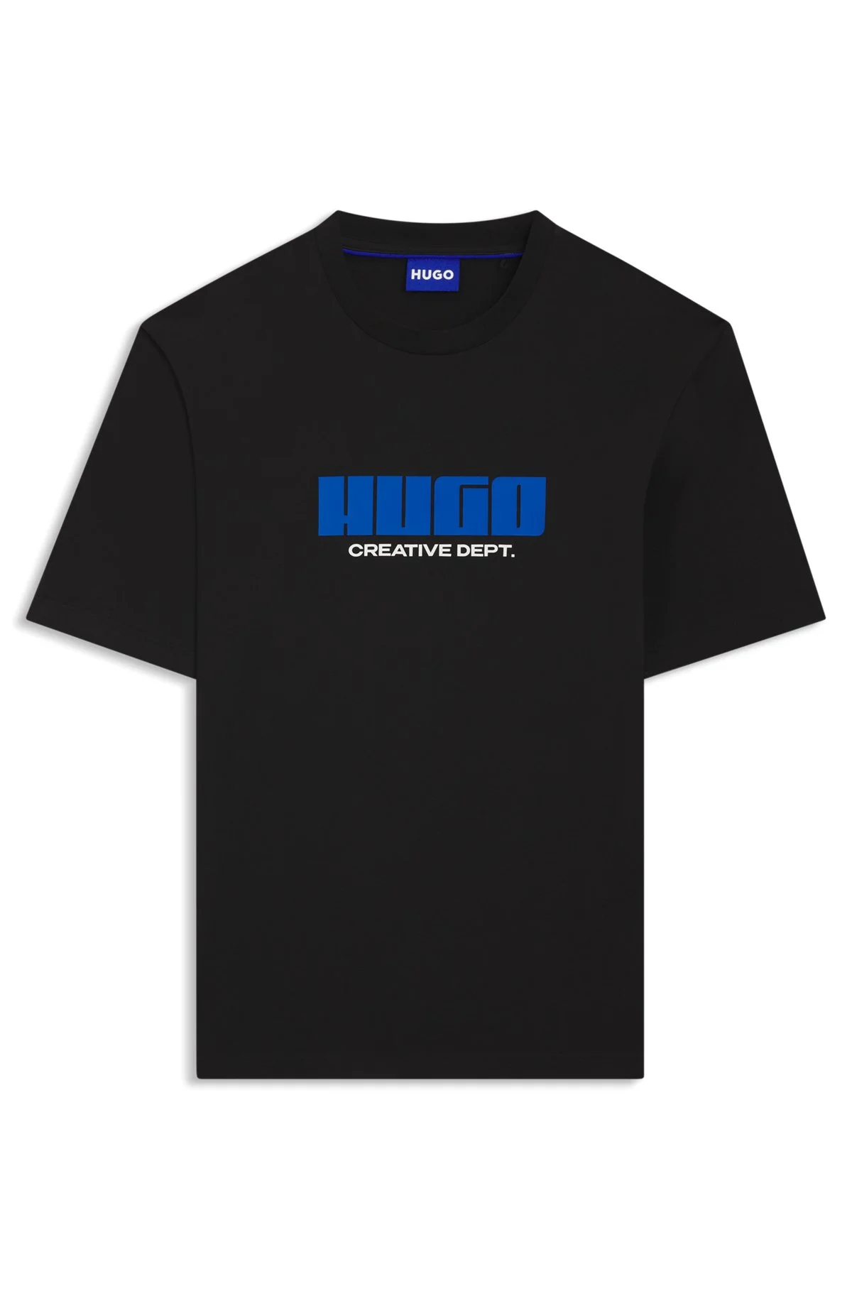 SIZE AND FIT The model wears a size M and is 6'2" tall with a, 31" chest, 26" waist and 35" hips. DETAILS Newromi - 50542934 Featuring creative logo artwork, this HUGO Menswear T-shirt is an expressive upgrade for your casual collection. Easy straight fit. Comfortable cotton jersey. Regular fit Neckline: Crew neck Short sleeves QUALITY & CARE INSTRUCTIONS Machine Wash Cold Gentle Do Not Dry Clean Do Not Tumble Dry Do Not Bleach Quality: 100% Cotton Iron Low Heat