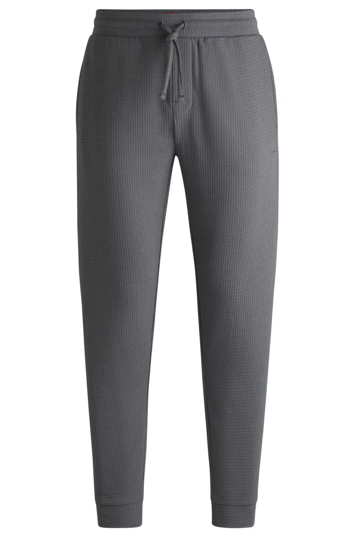 SIZE AND FIT The model wears a size M and is 6'3" tall with a, 35" chest, 31" waist and 35" hips. DETAILS Austin Pants - 50532012 Waffle-structured pajama bottoms by HUGO Menswear. This cuffed pair is crafted in a soft blend and detailed with an embroidered logo. Covered waistband Drawstring Pockets bottom front: Side pockets QUALITY & CARE INSTRUCTIONS Quality: 60% Cotton, 40% Polyester Iron Medium Heat Do Not Tumble Dry Do Not Bleach Machine Wash Warm Do Not Dry Clean