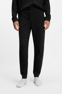 SIZE AND FIT The model wears a size M and is 6'3" tall with a, 35" chest, 31" waist and 35" hips. DETAILS Austin Pants - 50532012 Waffle-structured pajama bottoms by HUGO Menswear. This cuffed pair is crafted in a soft blend and detailed with an embroidered logo. Covered waistband Drawstring Pockets bottom front: Side pockets QUALITY & CARE INSTRUCTIONS Do Not Bleach Do Not Tumble Dry Quality: 60% Cotton, 40% Polyester Iron Medium Heat Do Not Dry Clean Machine Wash Warm