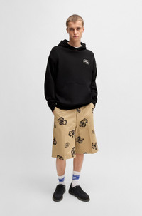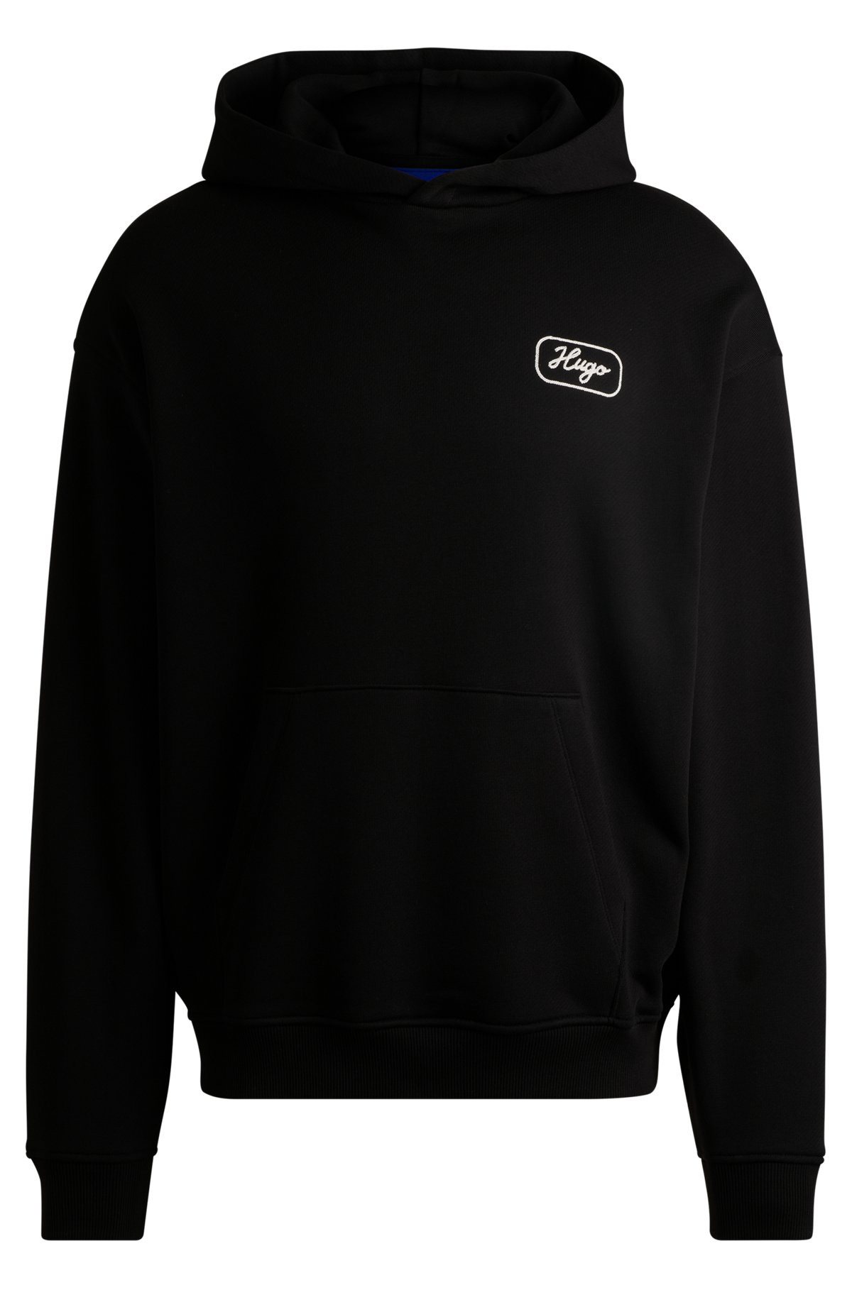 SIZE AND FIT The model wears a size M and is 6'2" tall with a, 35" chest, 27" waist and 35" hips. DETAILS Nualo - 50545939 Embroidered with branding and graphics, this HUGO Menswear hoodie is a statement layer. Cut to a loose fit in breathable French-terry cotton. loose fit Neckline: Hooded Long sleeves Ribbed cuffs QUALITY & CARE INSTRUCTIONS Do Not Bleach Do Not Tumble Dry Quality: 100% Cotton Do Not Dry Clean Iron Low Heat Machine Wash Cold Gentle