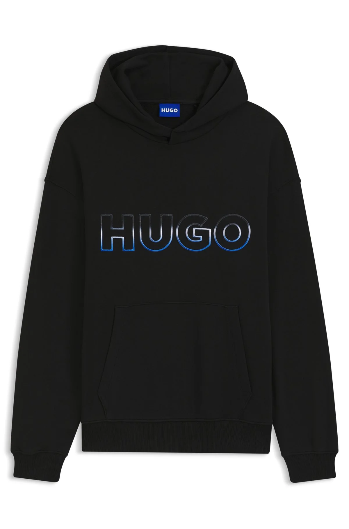 SIZE AND FIT The model wears a size M and is 6'0" tall with a, 33" chest, 27" waist and 35" hips. DETAILS Refresh your layering options with this HUGO Menswear hoodie, embroidered with an ombre logo. Cut to a straight fit. Soft French-terry cotton. Kangaroo pocket. Regular fit Neckline: Hooded Fastening top: Slip-on Pockets top: Kangaroo pocket Long sleeves Ribbed cuffs Standard length Nogudi - 50549151 QUALITY & CARE INSTRUCTIONS Machine Wash Cold Gentle Do Not Bleach Reduced Dry Clean Iron Low Heat Quality: 100% Cotton Do Not Tumble Dry