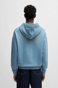 SIZE AND FIT The model wears a size M and is 6'2" tall with a, 31" chest, 26" waist and 35" hips. DETAILS Nazardo - 50510724 A signature hoodie with branding front and back by HUGO Menswear. This layer is cut to a loose fit in French terry made from cotton. loose fit Neckline: Hooded Long sleeves Ribbed cuffs Standard length QUALITY & CARE INSTRUCTIONS Quality: 100% Cotton Do Not Tumble Dry Do Not Bleach Machine Wash Cold Gentle Iron Low Heat Do Not Dry Clean