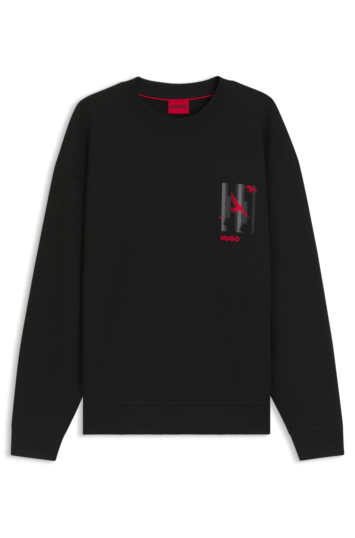 DETAILS Duckoo - 50544533 In breathable cotton terry, this relaxed-fit HUGO Menswear sweatshirt is great for layering. Printed front and back with statement bird artwork. Relaxed fit Neckline: Crew neck Long sleeves Ribbed cuffs Standard length QUALITY & CARE INSTRUCTIONS Do Not Tumble Dry Quality: 100% Cotton Do Not Dry Clean Machine Wash Cold Gentle Iron Low Heat Do Not Bleach