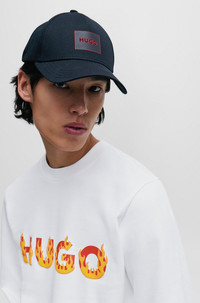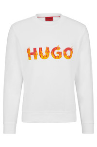 SIZE AND FIT The model wears a size M and is 6'2" tall with a, 37" chest, 27" waist and 37" hips. DETAILS Ditmo - 50504813 A statement sweatshirt by HUGO Menswear, cut to a regular fit in cotton terry with a flame logo in a puffed effect on the chest. Regular fit Neckline: Crew neck Long sleeves Ribbed cuffs QUALITY & CARE INSTRUCTIONS Do Not Bleach Do Not Tumble Dry Quality: 100% Cotton Do Not Dry Clean Iron Low Heat Machine Wash Cold Gentle