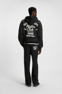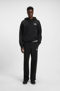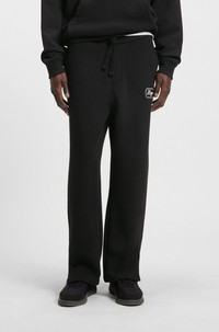 DETAILS Nepocky - 50545938 These HUGO Menswear tracksuit bottoms have a loose fit and slit hems for casual comfort. Special graphics embroidered front and back. Soft French-terry cotton. loose fit QUALITY & CARE INSTRUCTIONS Reduced Dry Clean Do Not Bleach Do Not Tumble Dry Quality: 100% Cotton Iron Low Heat Machine Wash Cold Gentle