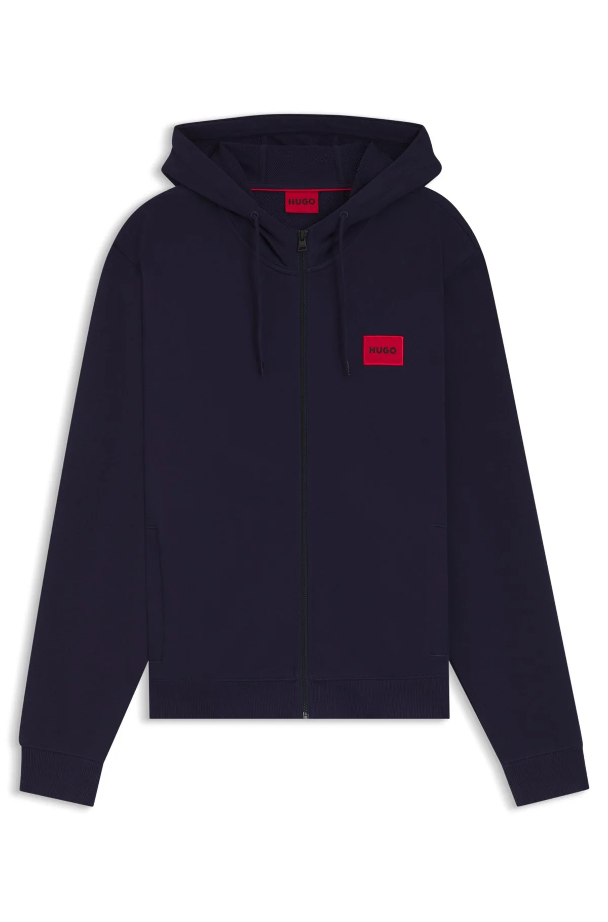 SIZE AND FIT The model wears a size M and is 6'2" tall with a, 34" chest, 29" waist and 35" hips. DETAILS Style this straight-fit HUGO Menswear hoodie with the matching tracksuit bottoms for a laid-back look. Soft cotton terry. Red logo label. Regular fit Neckline: Hooded Fastening top: Zip closure Long sleeves Ribbed cuffs Daple212 - 50447972 QUALITY & CARE INSTRUCTIONS Material: 100% Cotton, Waistband: 95% Cotton, 5% Elastane Do Not Tumble Dry Machine Wash Cold Gentle Do Not Bleach Reduced Dry Clean Iron Low Heat