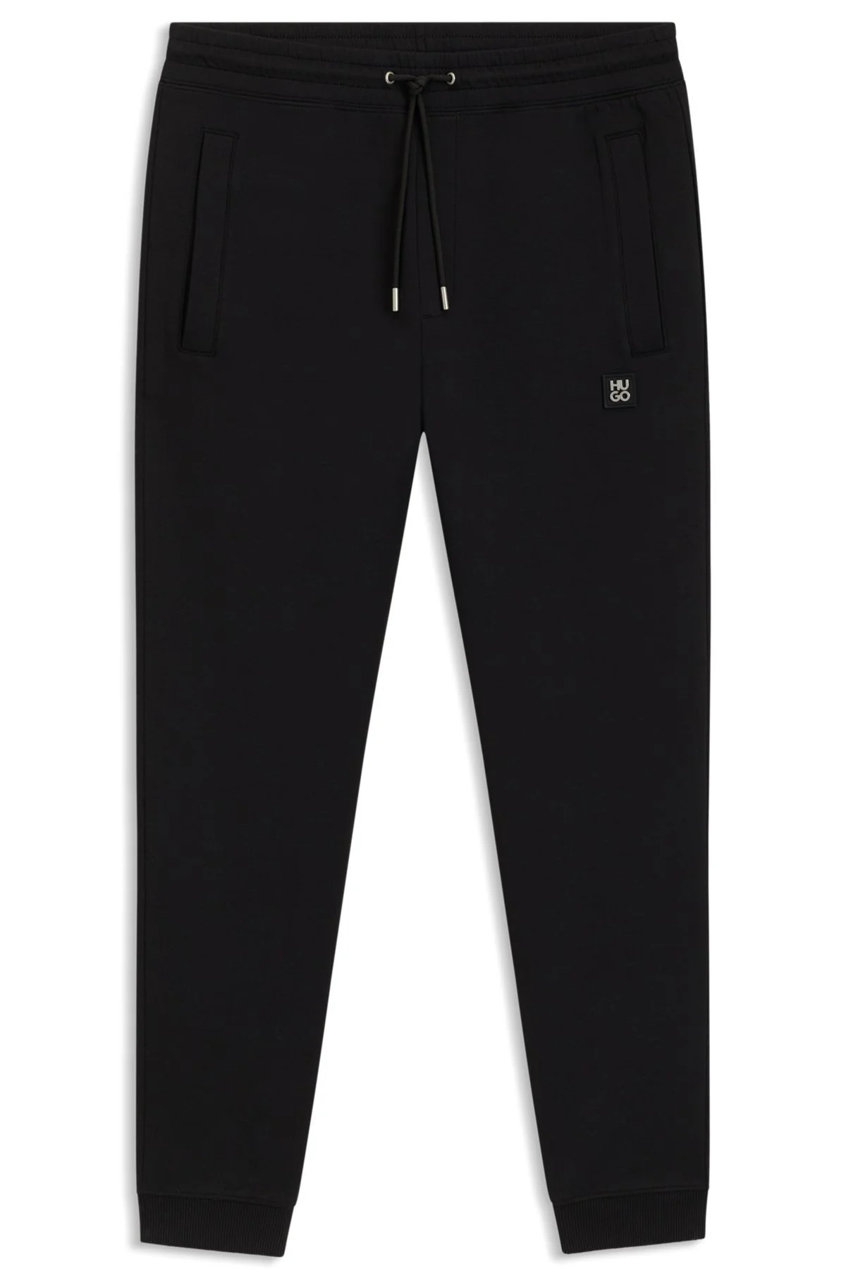 SIZE AND FIT The model wears a size M and is 6'2" tall with a, 31" chest, 26" waist and 35" hips. DETAILS Dimacs - 50533695 Easy-wear tracksuit bottoms in a laid-back fit by HUGO Menswear. This cuffed pair is crafted in a stretch-cotton with stacked branding. Relaxed fit Pockets bottom front: Side pockets QUALITY & CARE INSTRUCTIONS Do Not Bleach Quality: 82% Cotton, 13% Polyester, 5% Elastane Do Not Dry Clean Iron Low Heat Machine Wash Cold Gentle Do Not Tumble Dry