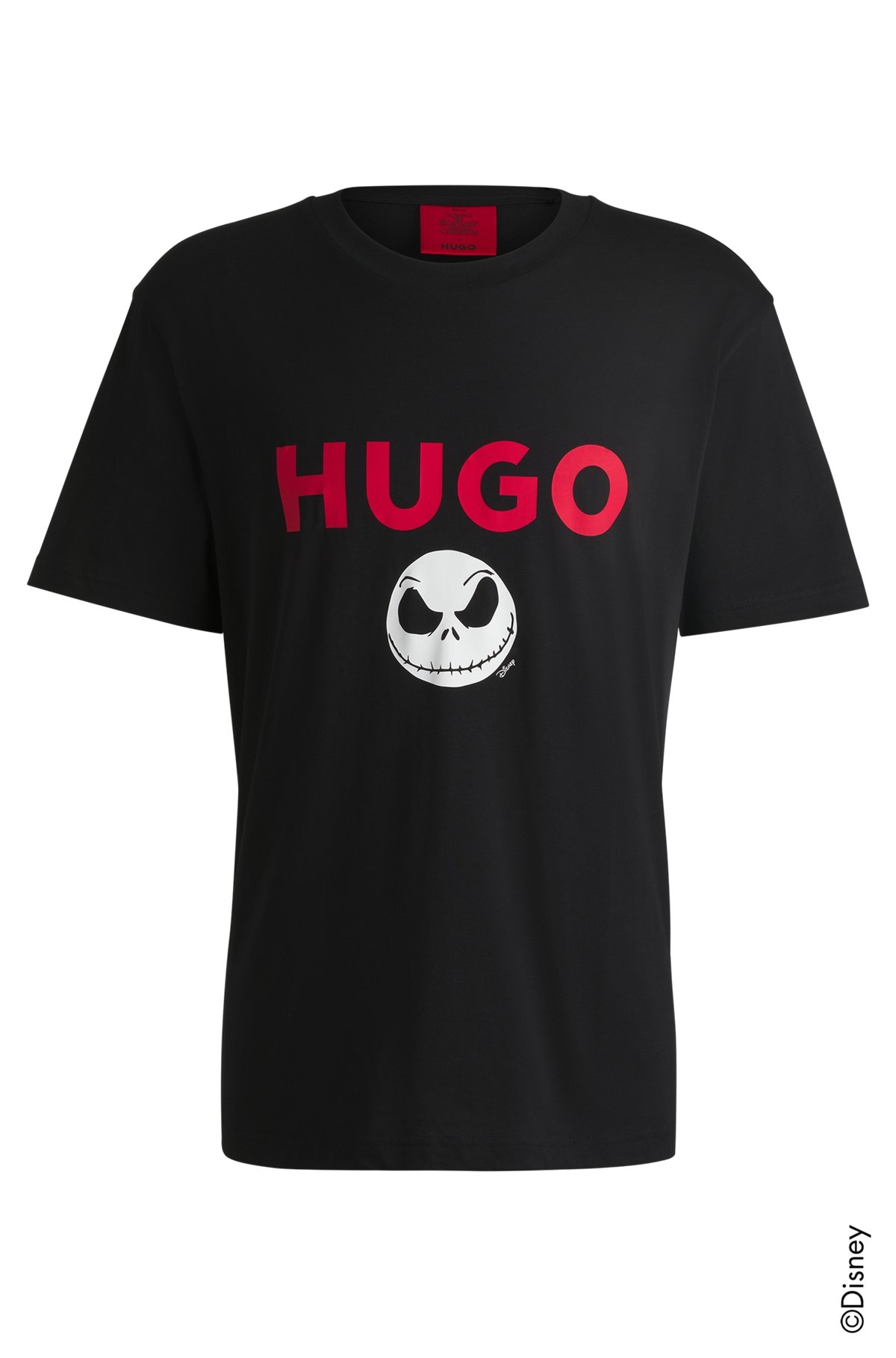 SIZE AND FIT The model wears a size M and is 6'0" tall with a, 32" chest, 25" waist and 35" hips. DETAILS Dightmare_NBC - 50537986 A relaxed-fit T-shirt in cotton by HUGO Menswear. This style is printed with a HUGO logo incorporating the iconic face of character Jack Skellington. From a limited capsule featuring iconography and bold motifs from a cinema classic, Disney's Tim Burton’s The Nightmare Before Christmas. Relaxed fit Neckline: Crew neck Short sleeves Standard length QUALITY & CARE INSTRUCTIONS Quality: 100% Cotton Do Not Bleach Do Not Dry Clean Iron Low Heat Do Not Tumble Dry Machine Wash Cold Gentle