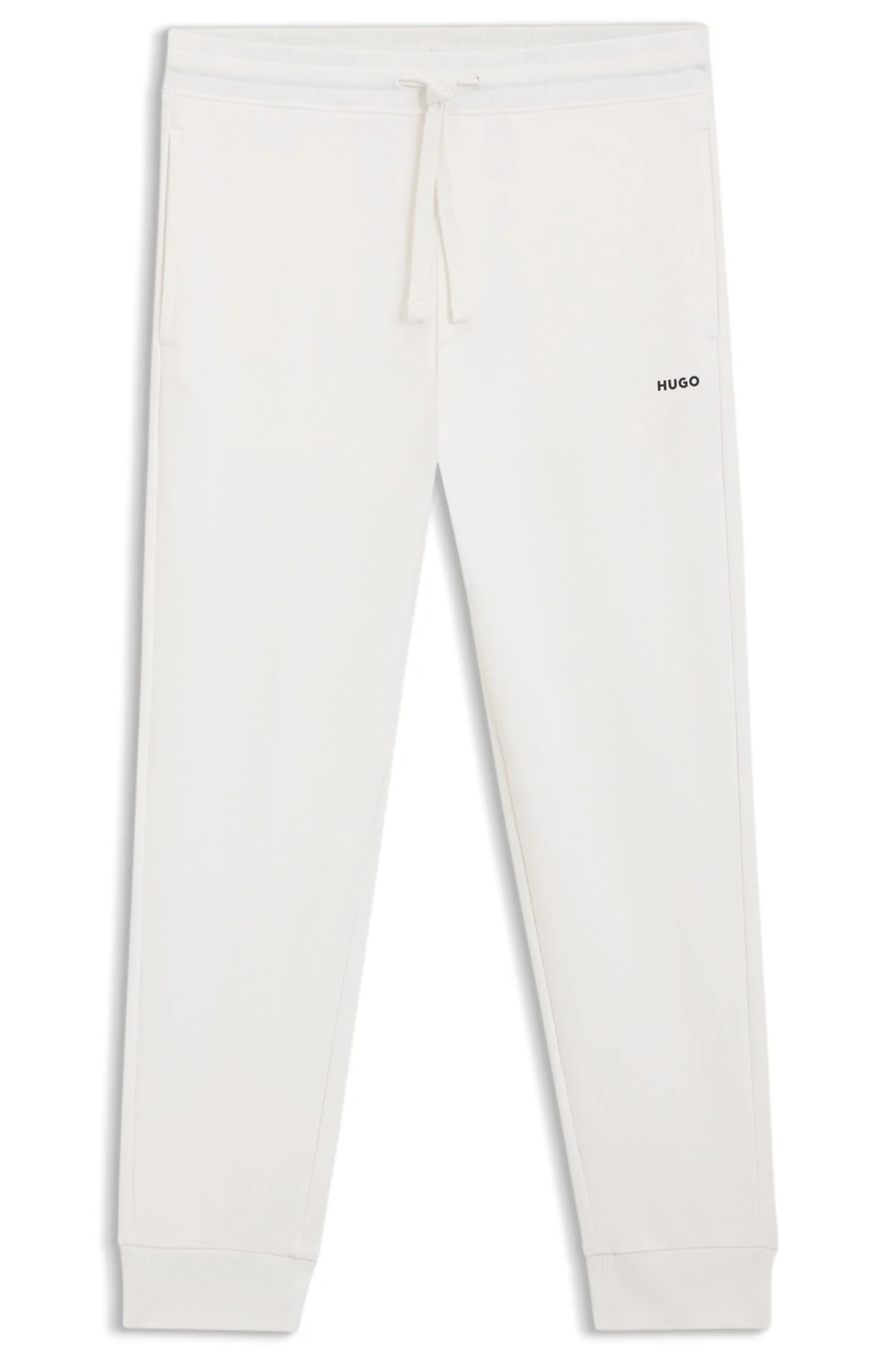 SIZE AND FIT The model wears a size L and is 6'2" tall with a, 34" chest, 29" waist and 35" hips. DETAILS Featuring a logo print, these HUGO Menswear sweatpants are cut to a straight fit in soft cotton terry. Cuffed hems. Drawstring waist. Regular fit Regular rise Elastic Waistband Pockets bottom front: Side pockets Dayote232 - 50489617 QUALITY & CARE INSTRUCTIONS Material: 100% Cotton Do Not Dry Clean Machine Wash Cold Gentle Do Not Bleach Do Not Tumble Dry Iron Low Heat