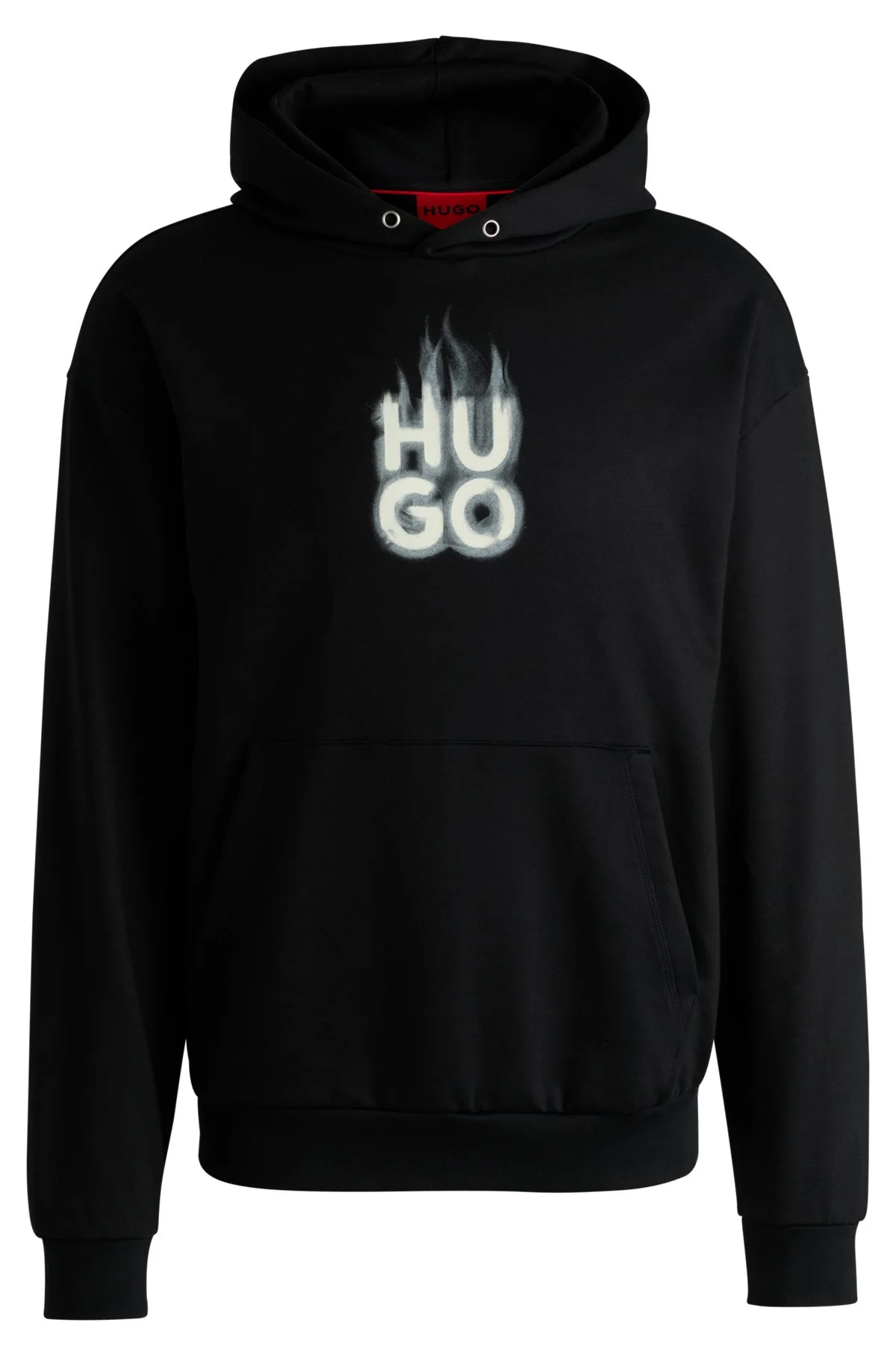 SIZE AND FIT The model wears a size M and is 6'2" tall with a, 35" chest, 27" waist and 35" hips. DETAILS Defnio - 50530428 A relaxed-fit hoodie with a stacked smoke logo print by HUGO Menswear. This layer comes in soft French terry with a weighty feel. Relaxed fit Neckline: Hooded Long sleeves Ribbed cuffs QUALITY & CARE INSTRUCTIONS Quality: 100% Cotton Do Not Tumble Dry Do Not Bleach Machine Wash Cold Gentle Iron Low Heat Do Not Dry Clean