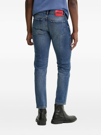 distressed tapered jeans Highlights - Blue - Distressed detail - Front button and zip fastening - Belt loops - Classic five pockets - Rear logo patch Imported Composition Cotton 94%, Recycled Cotton 5%, Elastane 1% Washing instructions Read Manufacturer Guidelines