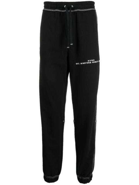drawstring track pants Highlights - Dark green - Lettering detail - Drawstring fastening - Elasticated hem - Side seam pockets - Back patch pocket Imported Composition Cotton 100% SIZE & FIT FittingInformation Designed for a relaxed tapered leg, allowing a comfortable loose fit above the knee with a closer fit towards the calves The elasticated hem at the ankle allows for movement and a comfortable fit Made from a midweight non-stretch fabric, this piece offers minimal elasticity when worn Washing instructions Read Manufacturer Guidelines