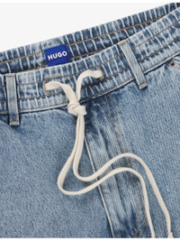 PRODUCT DETAILS - HUGO denim jeans - 100% cotton - Pulls on - Relaxed fit, elasticated drawstring waist, wide leg, side pockets, cargo pockets, faded wash - Machine wash mild - True to size - Midweight, non-stretch Ref: R04330965