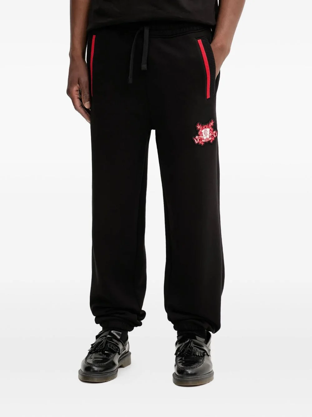 embroidered-panel drawstring track pants Highlights - Black - Red side stripe - Embroidered logo patch - Drawstring waistband - Cuffed hems - Side pockets Imported Composition Cotton 100% Washing instructions Read Manufacturer Guidelines