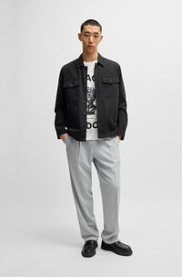 SIZE AND FIT The model wears a size M and is 6'2" tall with a, 34" chest, 29" waist and 35" hips. DETAILS Enalu - 50468744 A casual overshirt by HUGO, cut to a short length. Featuring signature details and patch pockets, this oversize-fit piece is crafted in soft gabardine. Oversized fit Camp collar Flap chest pockets Barrel cuffs Short length Fit back length: 72 cm (28 inches) QUALITY & CARE INSTRUCTIONS Iron Low Heat Machine Wash Cold Quality: 100% Cotton Do Not Bleach Do Not Tumble Dry Do Not Dry Clean
