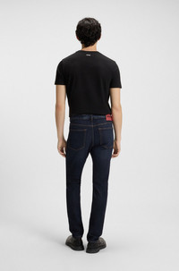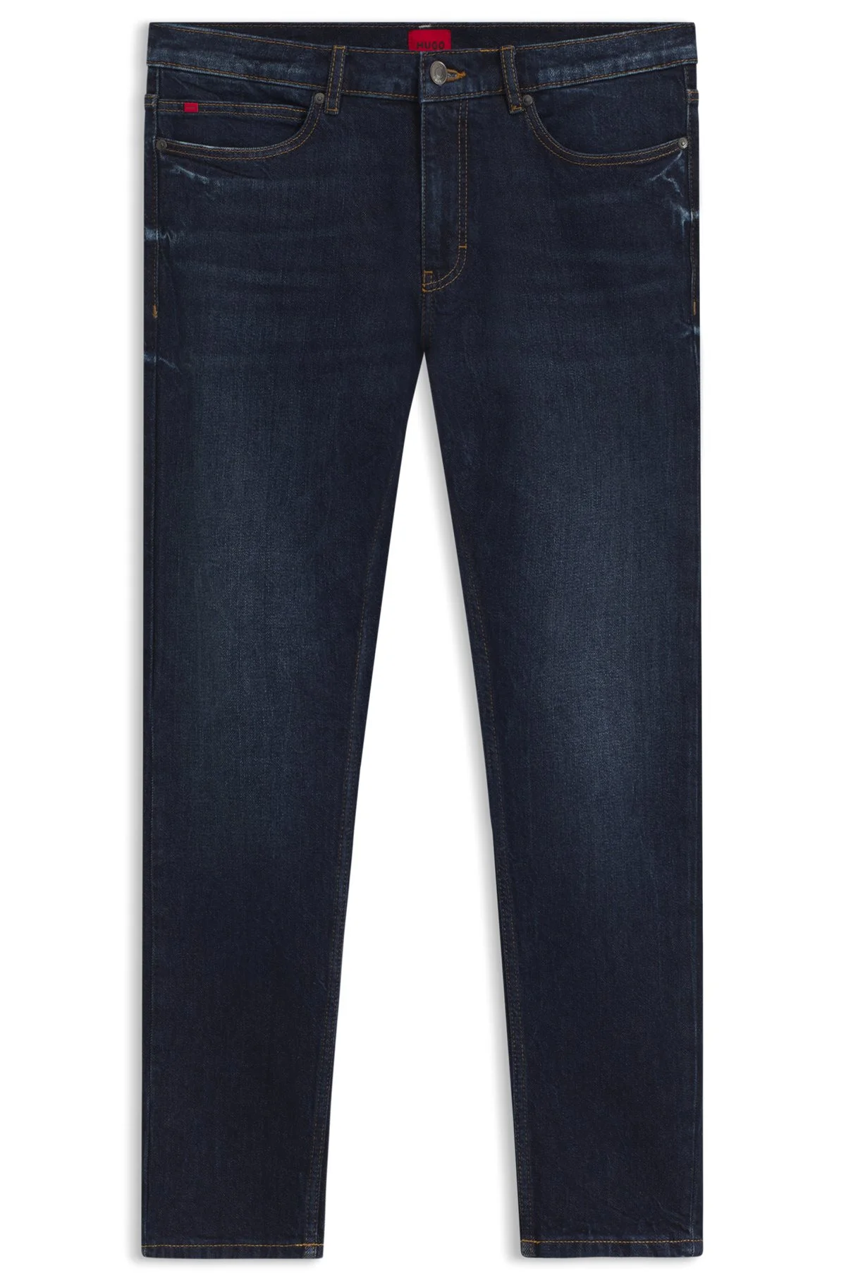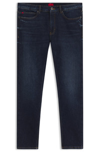 SIZE AND FIT The model wears a size 32/32 and is 6'0" tall with a, 33" chest, 27" waist and 35" hips. DETAILS HUGO 734 - 50542696 With used effects for an authentic look, these HUGO Menswear jeans have a versatile blue tone. Cut to a super-slim fit in stretch denim. Extra-slim fit Mid rise Button and zip closure Pockets bottom front: Side pockets Skinny leg Pockets bottom back: Patch pocket Standard length Fit foot width: 34,0 cm (13.4 inches) QUALITY & CARE INSTRUCTIONS Quality: 81% Cotton, 18% Lyocell, 1% Elastane Do Not Bleach Machine Wash Cold Gentle Do Not Tumble Dry Do Not Dry Clean Iron Medium Heat